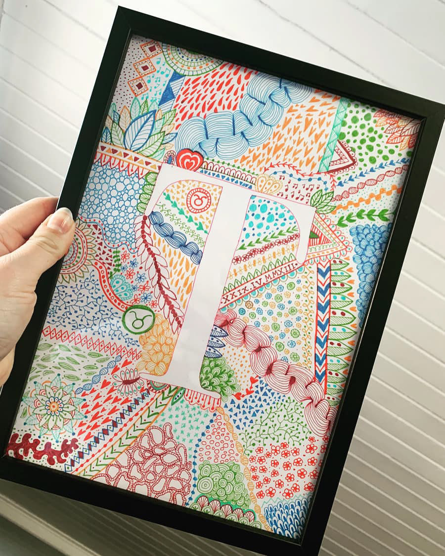 Hver illustrasjon er unik og tilpasset mottaker med fødseldato.
